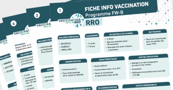 Elles sont destinées aux professionnels de santé pour soutenir leur pratique en matière de vaccination. Chaque fiche rassemble les informations utiles à une vaccination spécifique : RRO ; HPV ; Pneumocoques ; dTpa pendant la grossesse. Vous y trouverez, entre autres, le moment de vaccination, les caractéristiques du vaccin, les contre-indications, les co-administrations possibles, le vaccin disponible dans le cadre du Programme de vaccination.