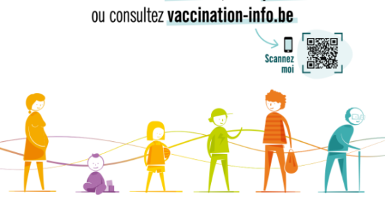 Cette affiche est à destination de toute la population de la Fédération Wallonie-Bruxelles. Elle met en avant l’importance de la vaccination tout au long de la vie avec le message « Du plus petit au plus grand, des vaccins vous protègent à chaque période de la vie » et incite les bénéficiaires/patients à poser leurs questions aux professionnels de santé qui jouent un rôle central dans la transmission d’information. Elle encourage également le recours au site de référence www.vaccination-info.be.